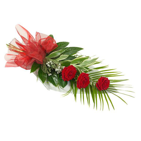 Simple and stylish, this bouquet of of 3 Red Roses and complementary foliage will delight and impress. Choose the Supreme option and we will present the Roses in a stylish vase with luxury foliages for a larger more impressive gift.