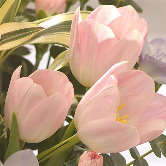 Please Note: Due to the seasonal availability of flowers it may be necessary to vary individual stems from those shown. Spring designated flowers are available from January until early April. Summer designated flowers are available from May until early September. When a Spring or Summer designated product is ordered our skilled florists may need to substitute flowers for one similar in style, quality and value if these products are ordered out of season. Where one of our designs include a sundry item like a vase or basket it may not always be possible to include the exact item as displayed. If such an occasion arises we will make every effort to replace the item with a suitable alternative. Whilst the flowers in the photograph may be in full bloom to get a great shot, the delivered item will feature the flowers more in bud for a longer vase life.