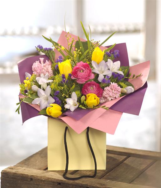 Please Note: Due to the seasonal availability of flowers it may be necessary to vary individual stems from those shown. Spring designated flowers are available from January until early April. Summer designated flowers are available from May until early September. When a Spring or Summer designated product is ordered our skilled florists may need to substitute flowers for one similar in style, quality and value if these products are ordered out of season. Where one of our designs include a sundry item like a vase or basket it may not always be possible to include the exact item as displayed. If such an occasion arises we will make every effort to replace the item with a suitable alternative. Whilst the flowers in the photograph may be in full bloom to get a great shot, the delivered item will feature the flowers more in bud for a longer vase life.